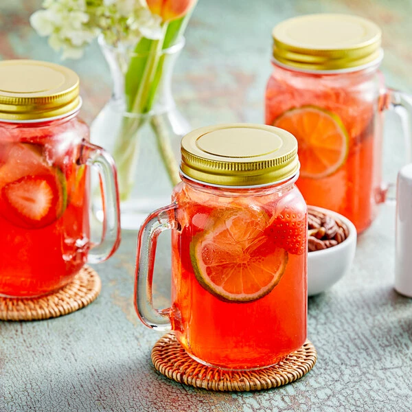 Acopa Rustic Charm 16 Oz. Drinking Jar / Mason Jar With Handle And Gold Metal Lid – 12/Case