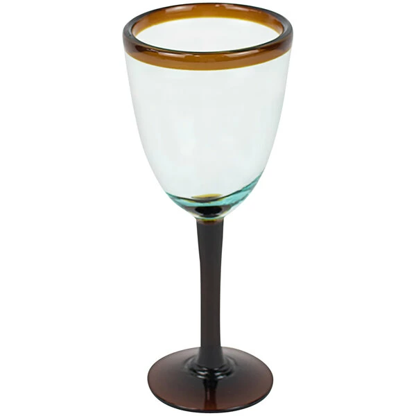 Kalalou 8 Oz. Recycled Wine Glass With Amber Rim And Stem – 6/Case